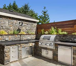 Extend your outdoor living space by adding an outdoor kitchen. Many of our kits can be extended or modified to include various stone finishes including granite and porcelain.Read More